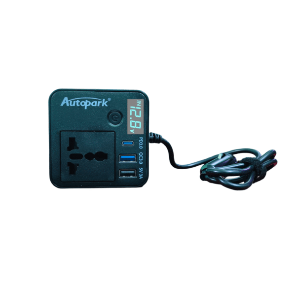 Autopark 220W Car Power Inverter – Charge laptops, phones, and more on the go with 1Γ— Type‑C PD, 2Γ— USB QC, and 1Γ— AC outlet. Safe, fast, and perfect for all 12V cars.